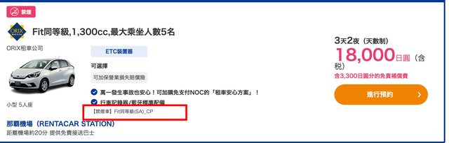 不過在選車的時候遇到兩種看起來內容一模一樣 可是價格不同的方案