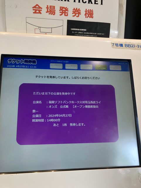 第二天的票選擇7-11取票,看到附近球迷拿著現場印出的票有夠後悔