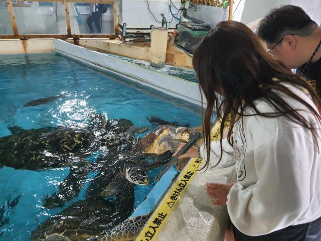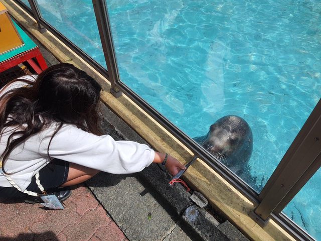 逛完了市集驅車前往海邊的桂濱水族館,昭和風格的小水族館可以近身餵海獅還有海龜,
