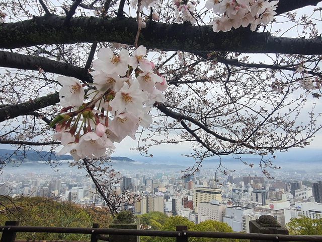 一上山發現整個城籠罩在霧氣中很是夢幻,往天守閣方向走去,遠眺整個城市開始晴朗起