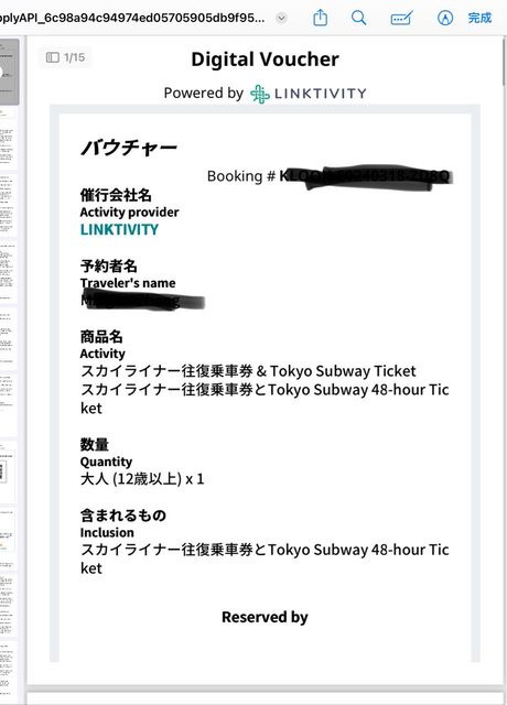 1. 讓售品項: skyliner往返+48小時東京地鐵電子券*1