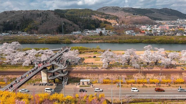 由新幹線北上車站步行約15分鐘,北上展勝地的櫻花祭時間接近日本的兒童節,會在北上