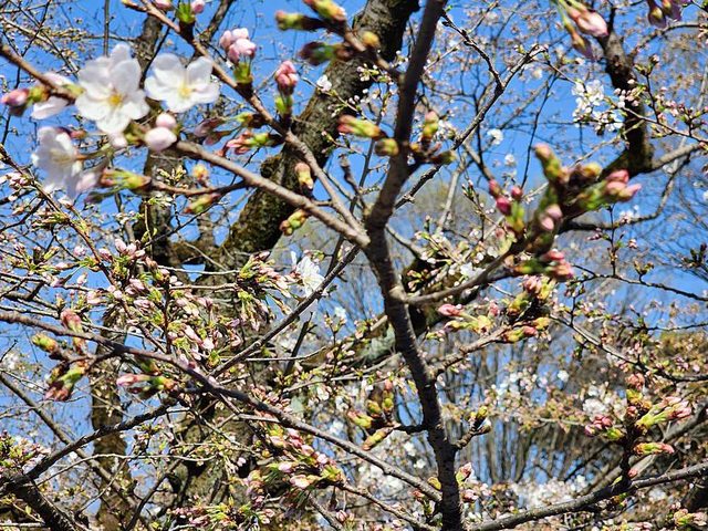 單純看櫻花的話,之前幾年有遇到過幾次櫻花季,但沒有這樣坐下來過。