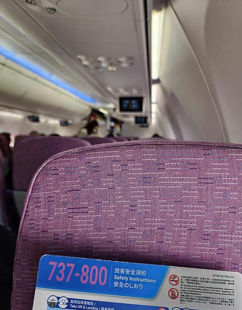 回程是737-800,沒有個人視聽設備,要用手機連機內WIFI看。