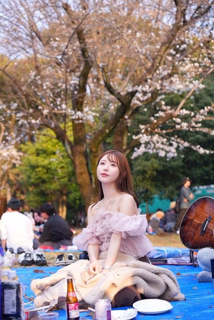 日本人那樣鋪個塑膠布,坐下來吃吃喝喝的賞櫻。
