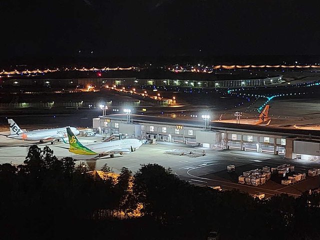窗外夜景看得到成田T3,有宵禁的關係,半夜不用擔心飛機起降的聲音。