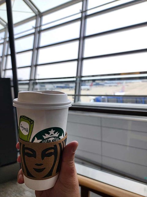 在登機門前一杯豆乳拿鐵也是我搭機的定番了