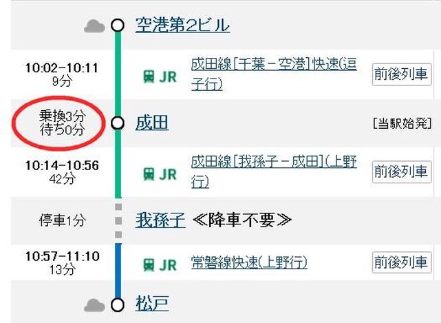 如果同樣也要在成田車站轉車,千萬要留足夠時間,或是至少搭對車廂。