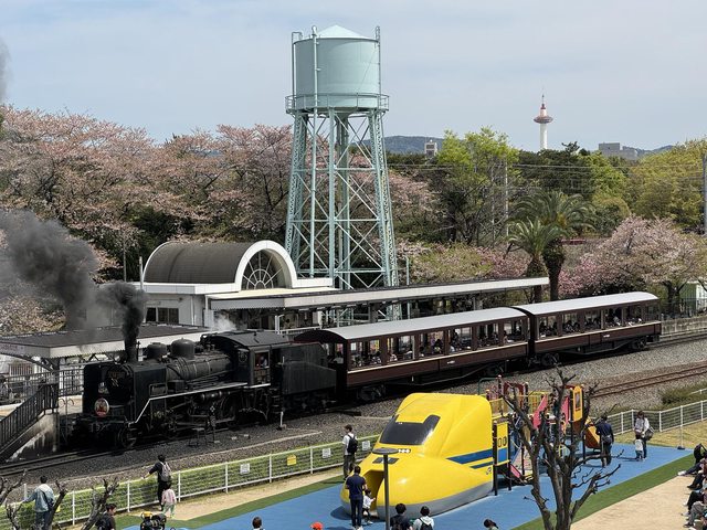 短程運轉體驗的蒸汽火車,幸運的是背景還有一些櫻花