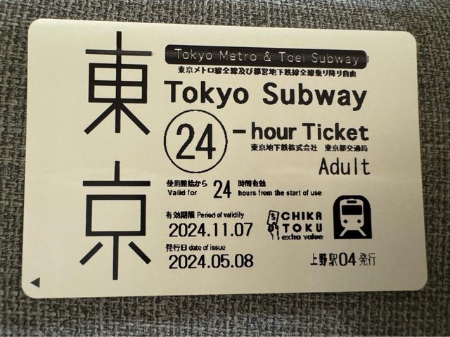 東京地鐵24小時券已取出如上圖,掛號郵寄(有效期限至2024.11.7)