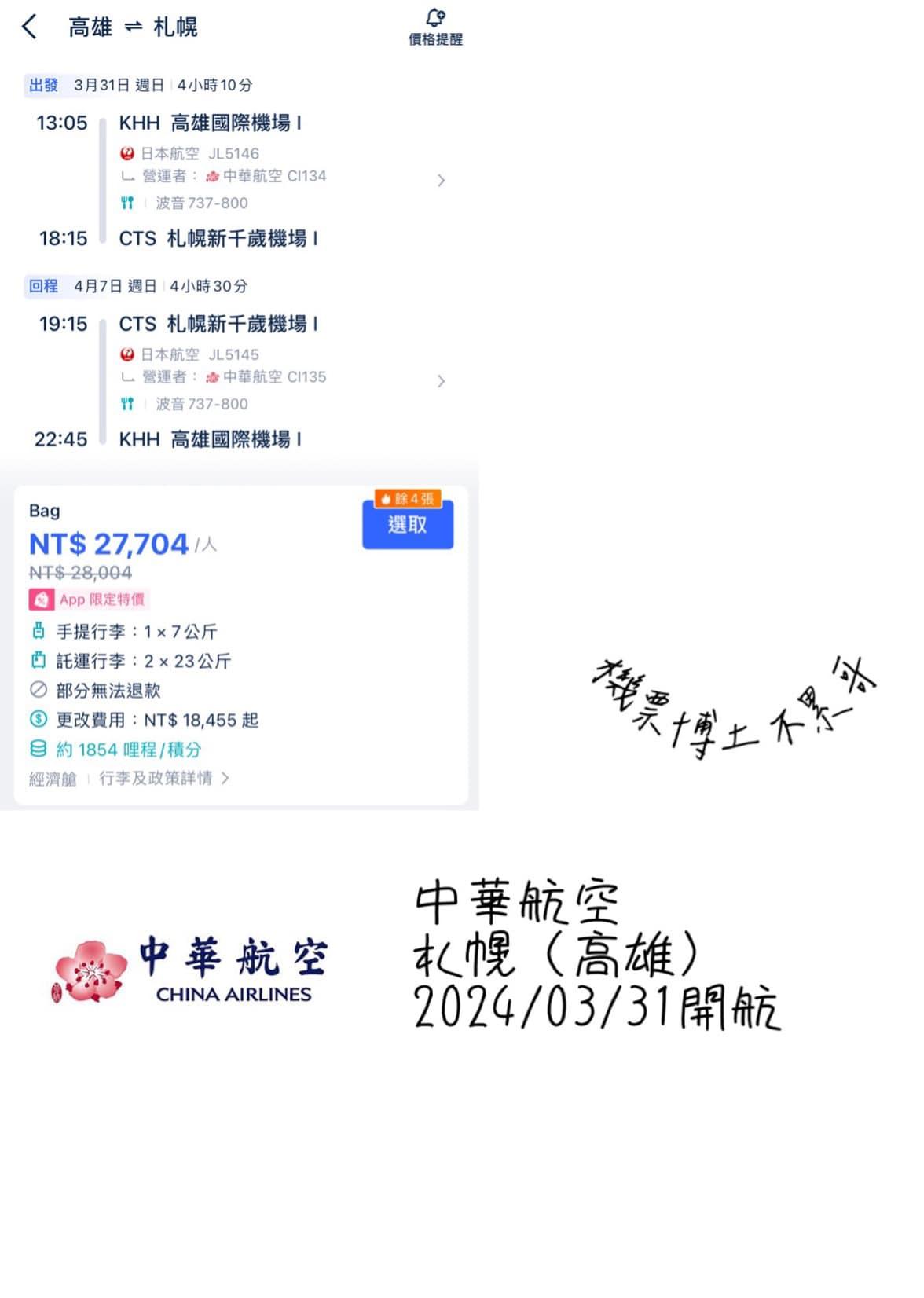 → a5687920 : 高雄飛新千歲何時有? 05/17 14:53