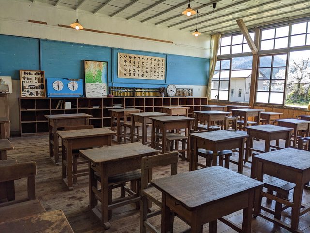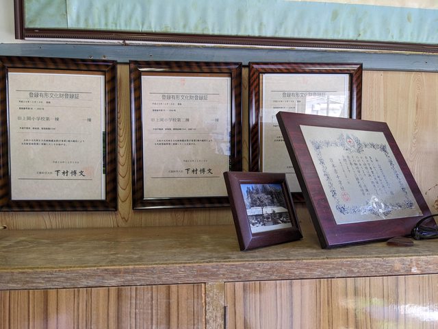 遊記日期:2024.4.13 (六) 舊上岡小學校 位於茨城縣大子町 可從常陸大子JR站附近的觀光中心租借腳踏車前往 只有假日才有開放校舍內部 免費入場 是一些日劇和動畫的取景地 可隨意捐款幫助維護校舍 現場有志工幫忙導覽解說 全部是木造的校舍 1879年創立 2001年閉校 也有一百多年的歷史了 中午去人還不多 可以好好地拍到校舍內的空景 感受安靜的氣氛 仿佛穿越時空的錯覺 好想再回到小學的生活啊! 這次來的時候剛好櫻花盛開 拍起來更好看 可惜這裡已經不存在少女與戰車的周邊痕跡了 只剩下建物背景 還有一些地方變成禁止進入了 只能從外面拍 已登錄有形文化財