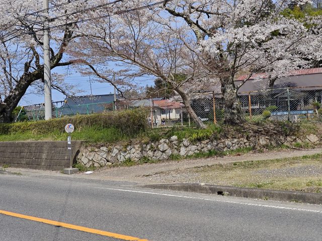 校舍前空地 兩棵大櫻花樹點綴下 校舍感覺更有歷史感了