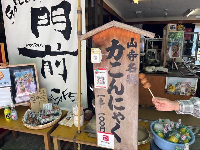 登山前先買串山寺名物-力蒟蒻補充體力。