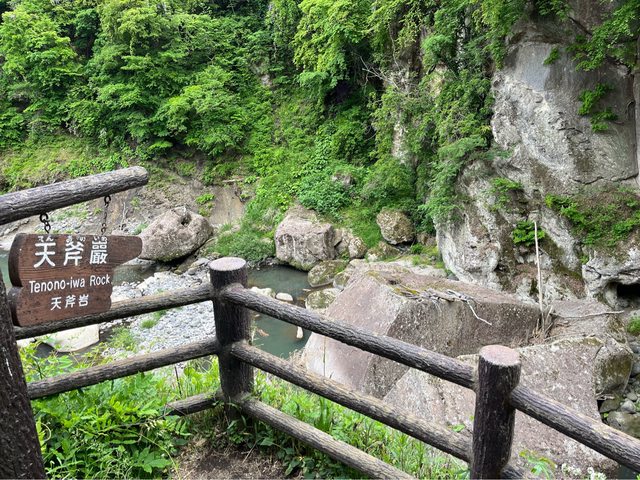 這裡的步道約1公里長,高度距峽谷河面約20公尺,沿途可以欣賞被名取川侵蝕的奇岩怪