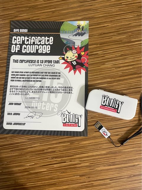 高空彈跳的證明書和隨身碟