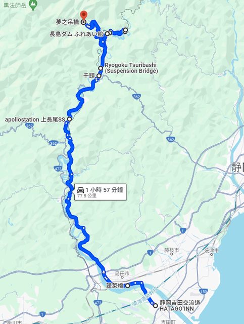 預計路線 岡崎SA/濱松SA/蓬萊橋/ハタゴイン静岡吉田インター,