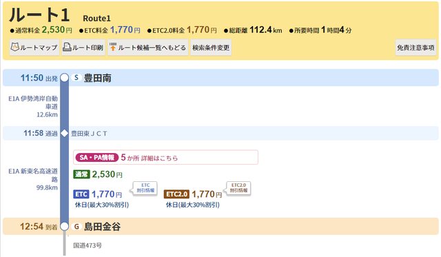 最終收費金額如當初官網預估一樣(沒ETC 2530日元)