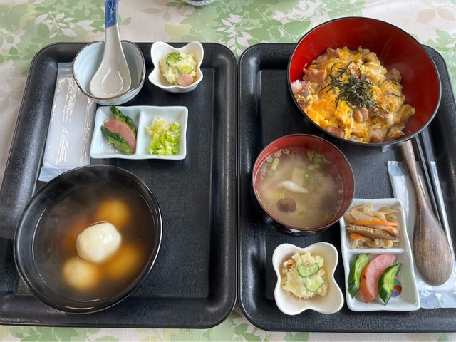 料室),並在車站外的餐廳用餐(比内地鶏親子丼 850円、あんかけだまっこ600円)。