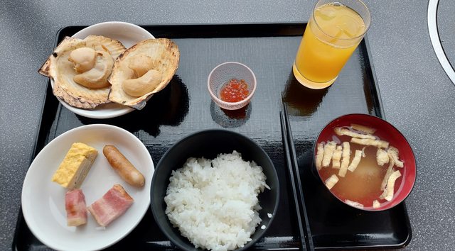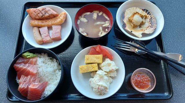 這天的早餐多了烤扇貝,這次 Day3 及 Day5 早上有提供 06:32