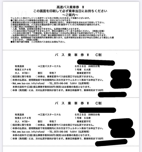 標題[讓售] 6/28 有馬溫泉-三宮 特快巴士2張