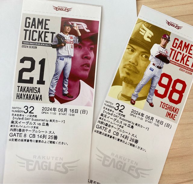標題[贈送] 6/16 日本東北樂天vs廣島 棒球票*2