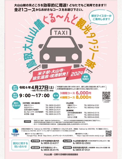 造訪日期:2024年5月 鳥取縣政府提供計程車補助方案如下: https://i.imgur.com/rbq9Suo.jpeg