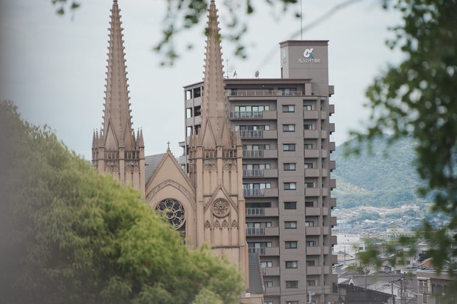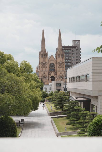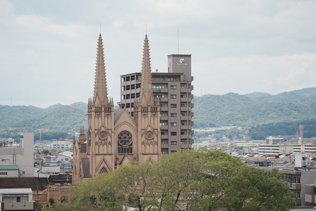 從福山城公園往西邊望,還有一個奇妙的景象。高聳的哥德式建築,讓人瞬間飛到歐洲