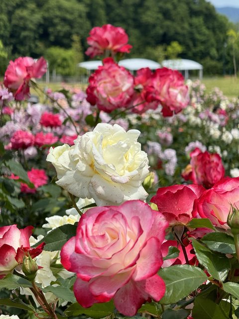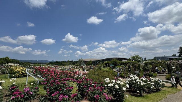 造訪日期:2024年6月上旬 以下文長圖多請見諒。 家母很喜歡花花草草跟看風景, 所以趁他們這次來日本的時候, 拉他們一起去自己有興趣的景點XD 第一站就是長岡市的越後丘陵公園, 公園內的ながおか香りのばら園每年會有二次花期, 分別是5月下旬到6月下旬即10月上旬到11月上旬。 園內有約800品種2400株各式各樣的玫瑰花。 詳細就不多說,有興趣可以參考官網: