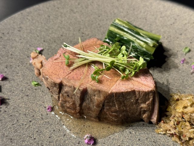 英式烤和牛, 厚切但吃起來完全不會膩也不會柴, 真的蠻厲害的一道菜,但可惜它還不是主菜XD