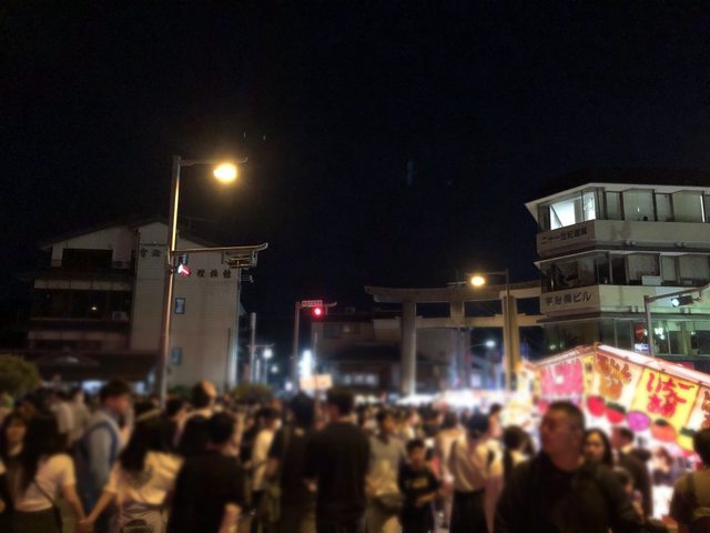這時候已經1700了 終於把聖地巡禮點都走完了 下山來去參加縣祭吃飯啦 下山才發現 人超多的阿 我早上在宇治閒晃都沒這麼多人啊