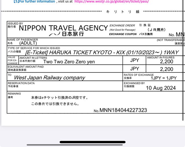 標題[讓售] Haruka 京都到關西空港車票