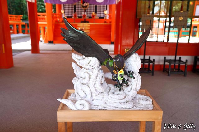 隻腳的八咫烏現身為神武天皇帶路,因此八咫烏成為熊野信仰中如神明使者般的存在。