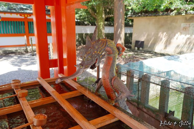 進入本殿前的手水舍,出水處的造型是一隻有著長鼻與大獠牙的龍,蠻特別的。