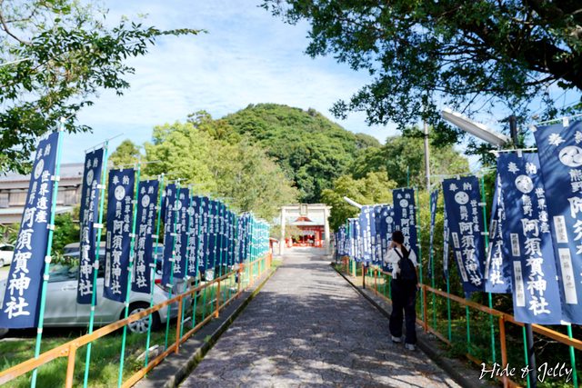 阿須賀神社的本殿,後方就是標高48公尺的蓬萊山。神社的規模不大,也不算華麗,許多