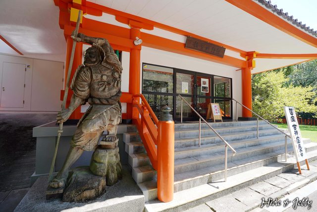參道旁的「熊野神宝館」前,有神武天皇的木雕,相當精緻。