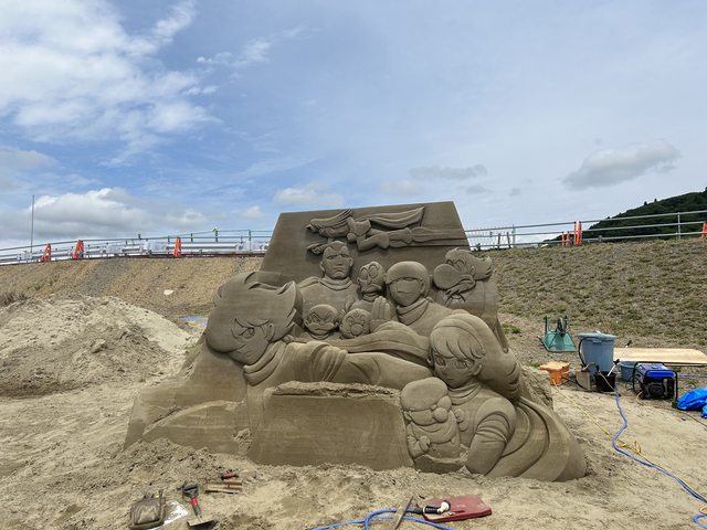 距離中午乘船時間還有點時間所以先到附近的石ノ森萬画館看看。 剛好看到外面正在製作沙雕藝術,官方是說6/16會完成。