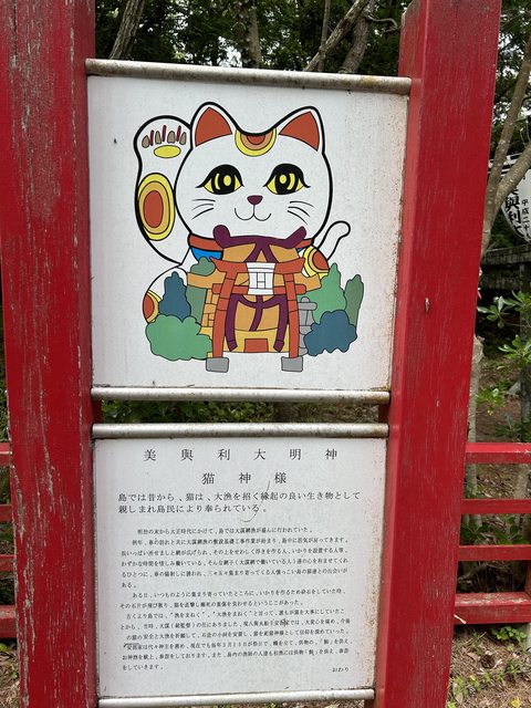 猫神社。 到這邊折返,不往北方比較少貓的大泊港的話,時間上還算是可以。 但如果要更仔細跟貓玩的話可能要搭早上的船班比較適合。