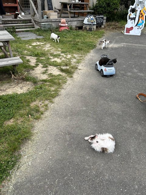 抵達田代島,沒有停大泊港所以來回都是在仁斗田港。 附近的田代食堂聚集了不少的貓。