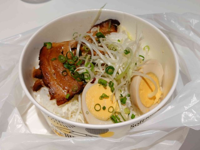 有兩片薄薄的叉燒、兩片切半的糖心蛋,一些蔥絲和白飯,收一千三yen我覺得很空虛…