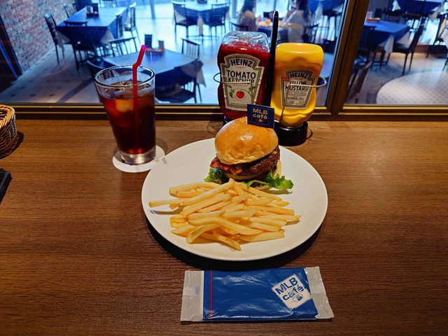 外面很熱想喝冷飲所以選了MLB餐廳當中餐,他是MLB認證的,就像運動酒吧,漢堡肉很厚