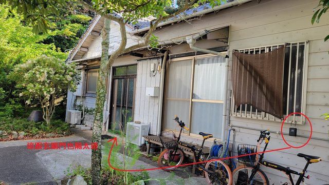 老先生帶我進門前的院子,把窗戶上掛著的黑盒子轉面,打開隱藏的蓋子露出4碼密碼轉輪