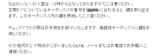 入住前一天一封信告知:鑰匙盒的密碼,以及鑰匙盒位於