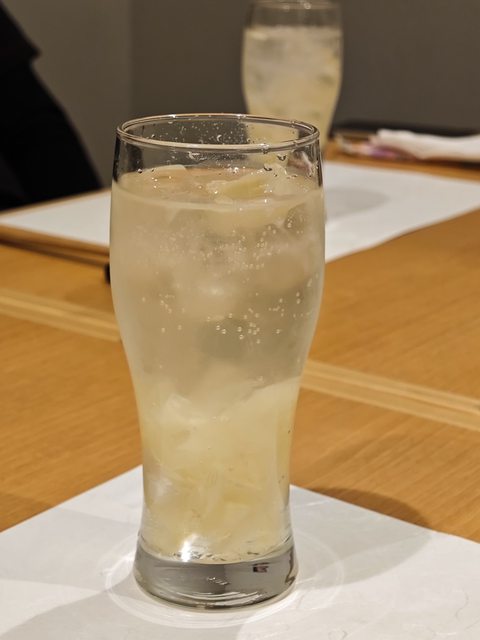 所以我們都點了一個他們店裡掛名的生薑啤酒(還是汽水?),醃漬薑切片配上氣泡口感
