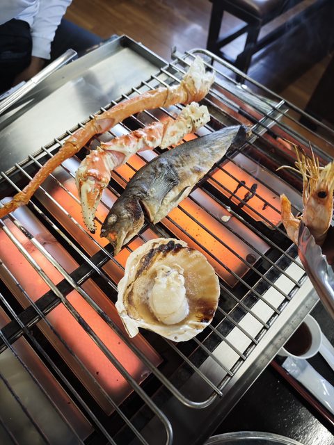 這是旅伴的烤盤套餐,非常的…大…是說那螃蟹腳大概是三十公分超過了