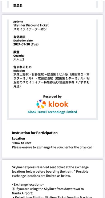 1. 讓售品項:東京 skyliner單程車票*2張