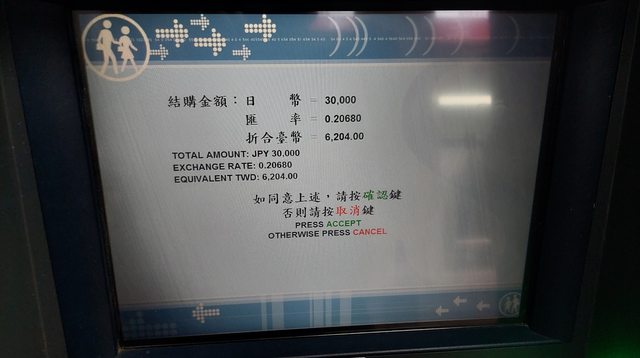 出發日的早上,台銀提款機現鈔匯率