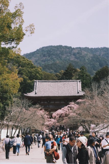 都就能馬上感受到靜謐與安詳的聖城遐想,在一下京都車站後就滿滿人潮沖散,加上櫻花