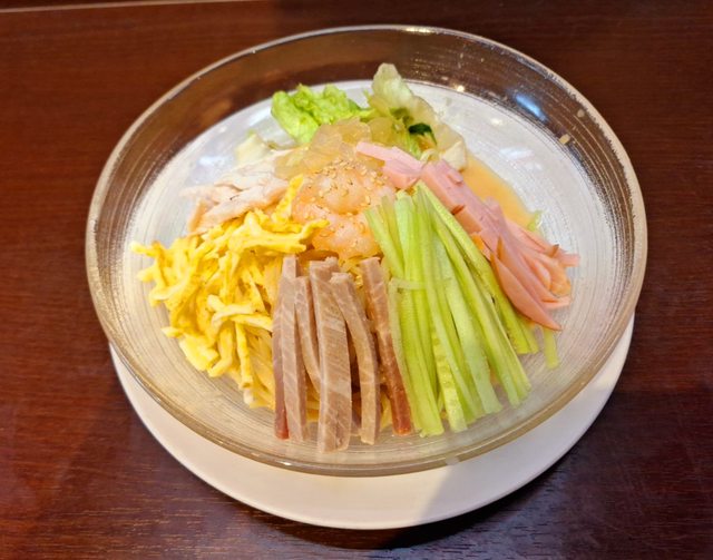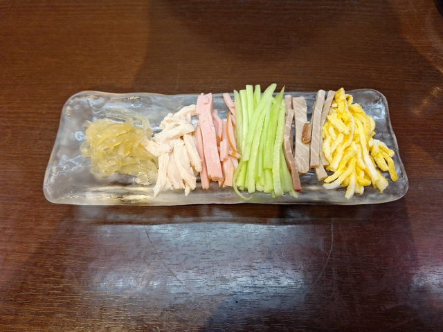 從左到右:海蜇皮 雞肉 火腿 小黃瓜 叉燒 雞蛋