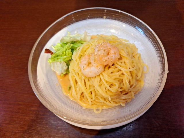 麵條 以及蝦仁跟生菜